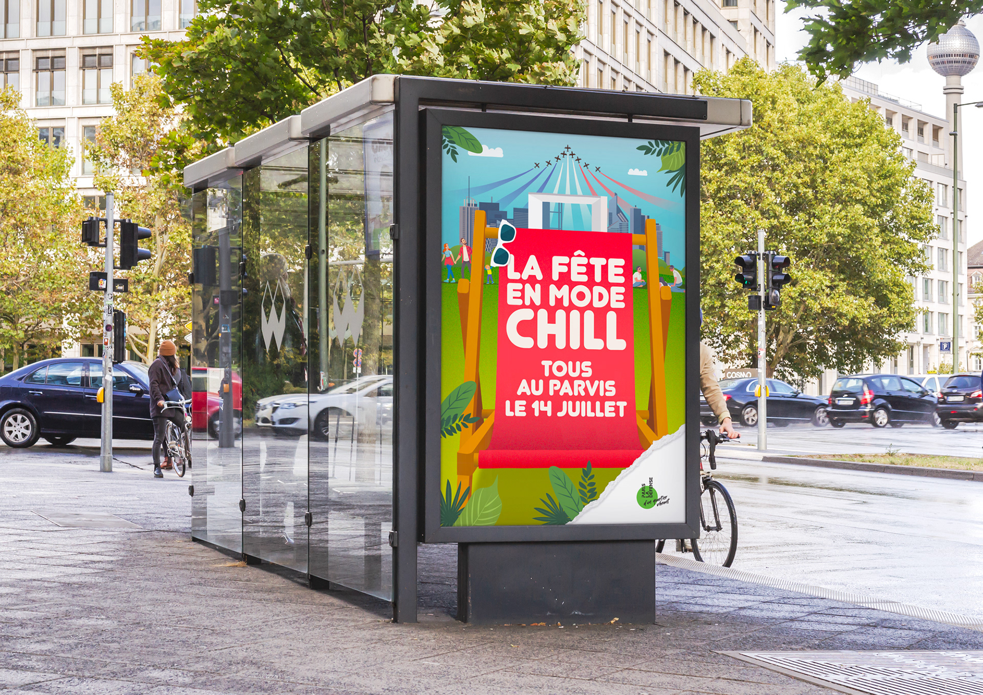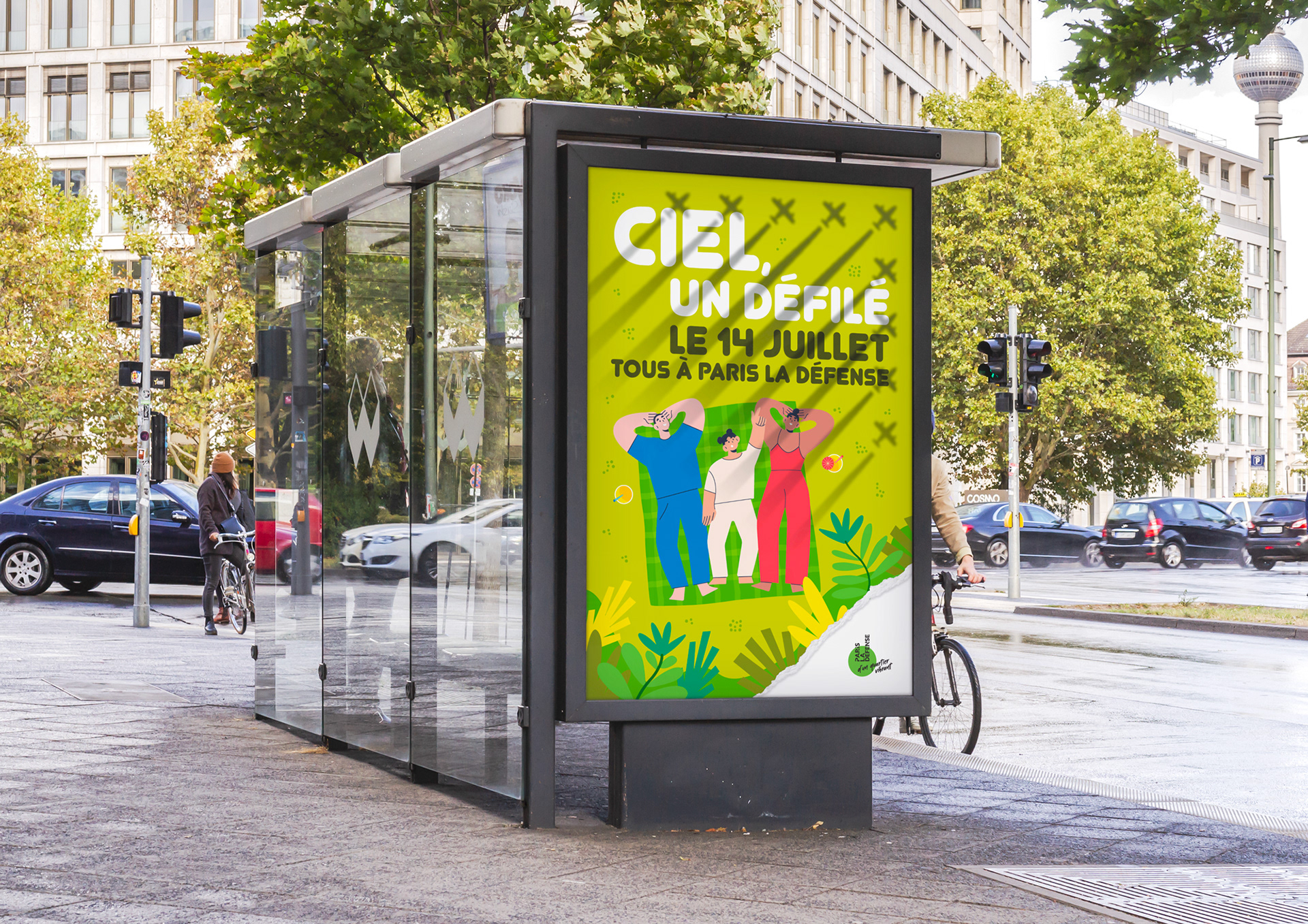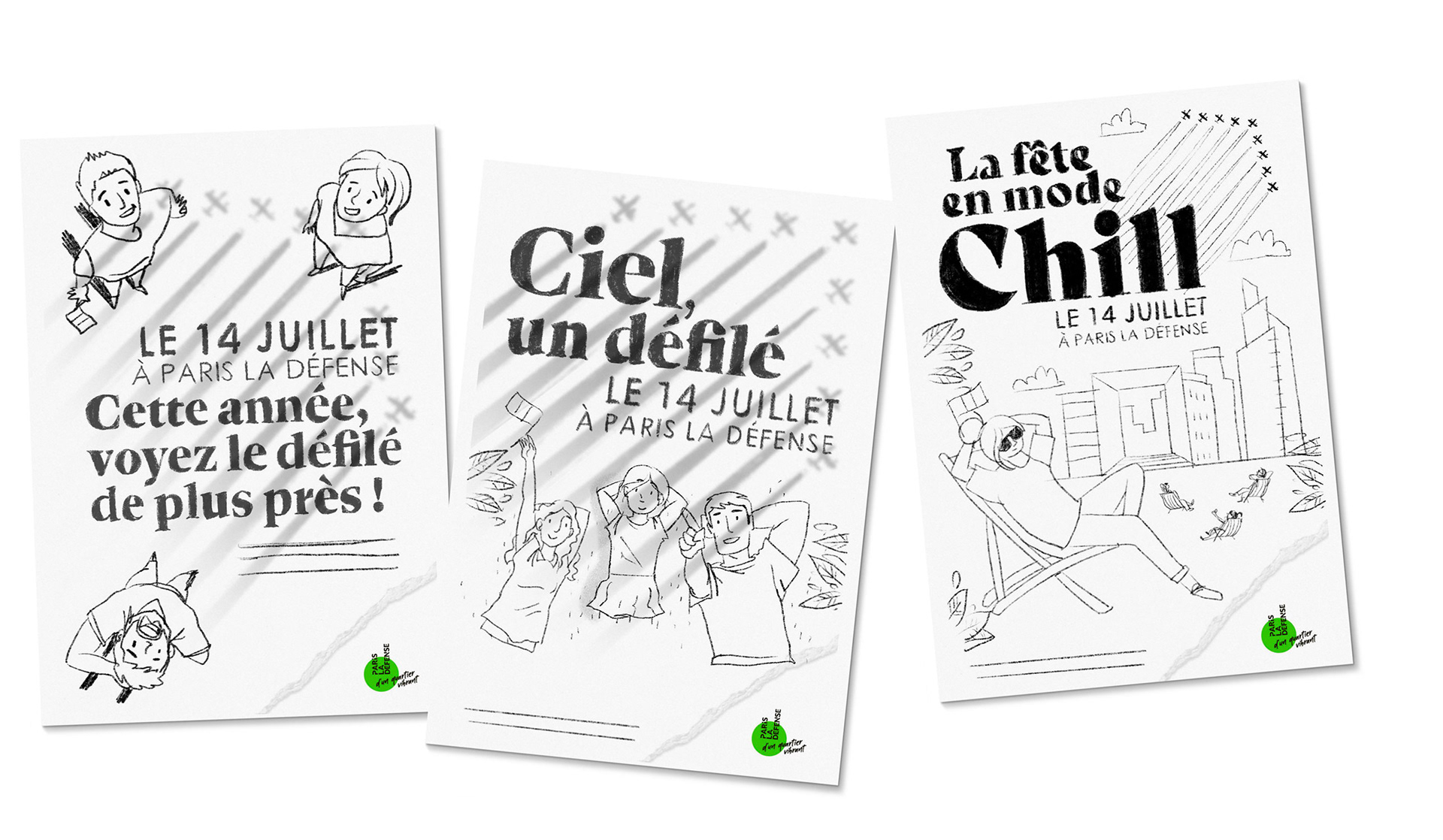 J’ai répondu à un Appel d’Offres public, en partenariat avec l’agence Bathyscaphe, pour concevoir la campagne de communication de l’événement du 14 juillet sur le parvis de La Défense, incluant la proposition d’un Key Visual et de ses déclinaisons.
