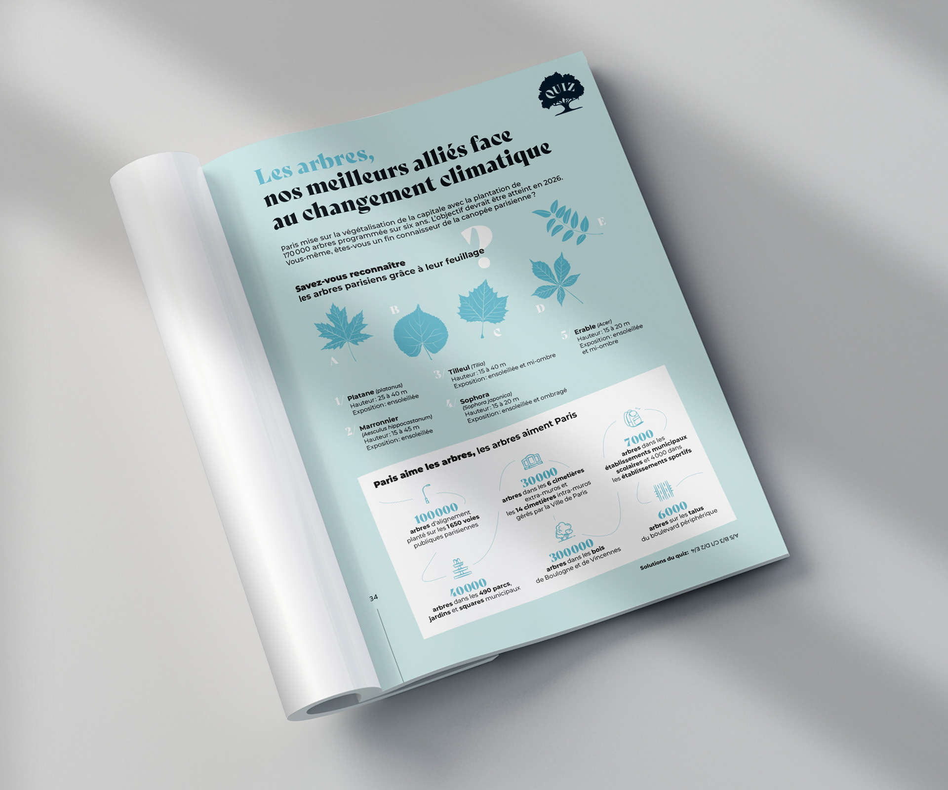 La maquette proposée est créative, moderne, originale et claire, rythmée par une diversité de formats de mise en page. L’objectif était de proposer un support à la fois dynamique et accessible, destiné au grand public, tout en restant plaisant et divertissant.