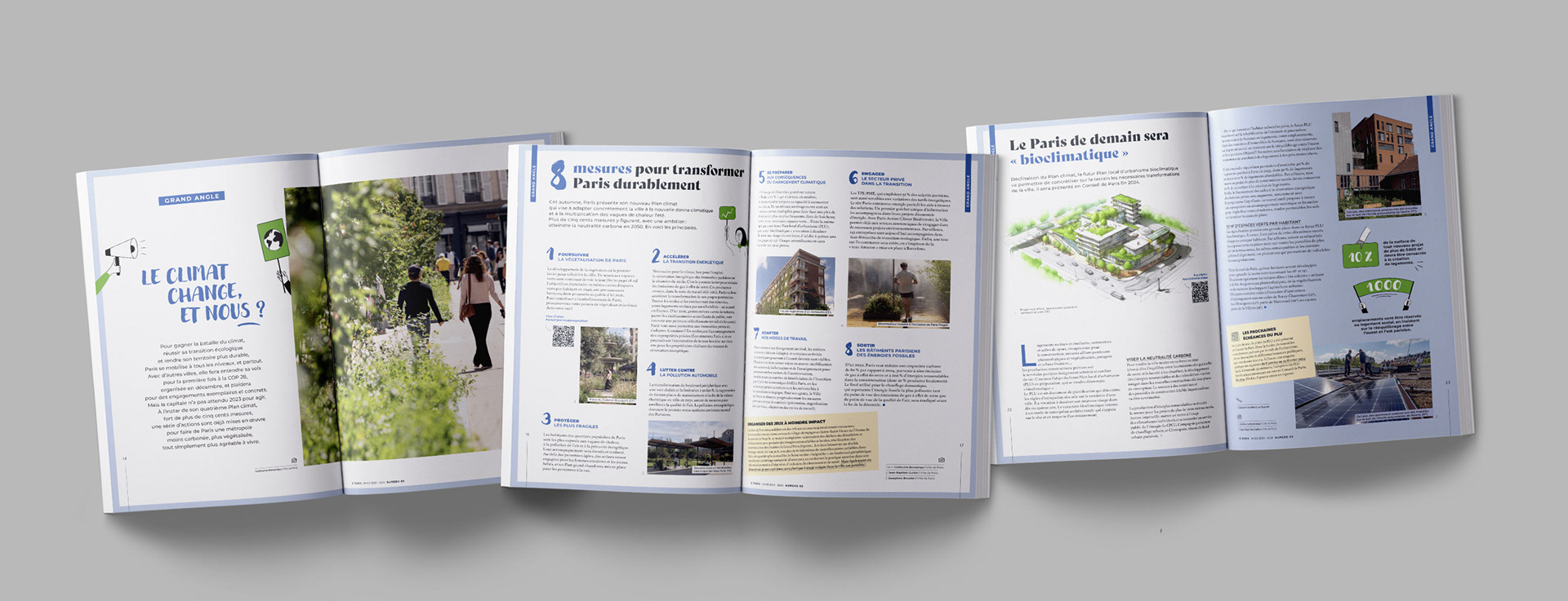 J’ai collaboré avec l’agence Bathyscaphe pour répondre à l’appel d’offres relatif à la création du magazine municipal d’information “À PARIS” et de ses hors-série thématiques.