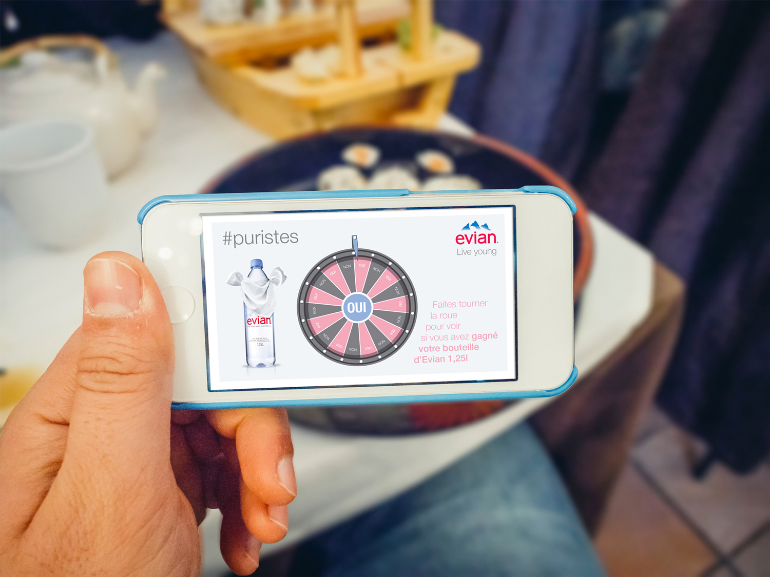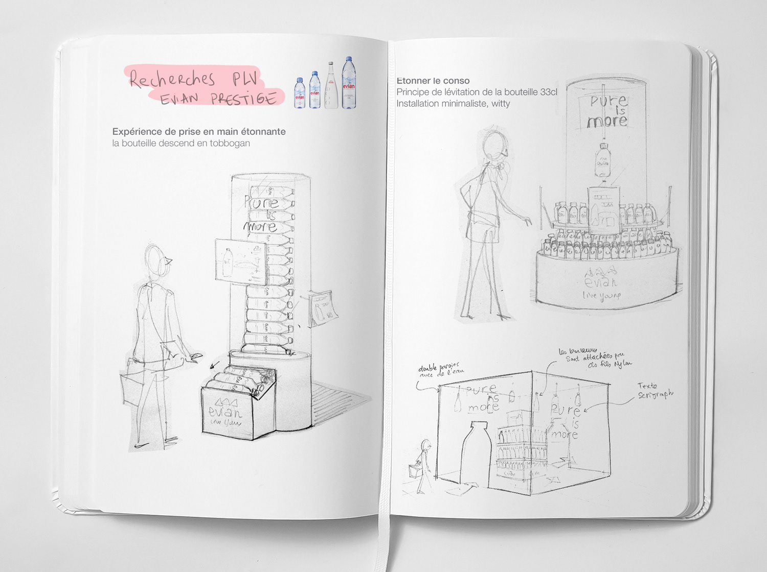 L'enjeu était de communiquer sur la gamme PRESTIGE d'Evian, autour de Key Visual et de la PLV de luxe, en gardant les codes graphiques d'EVIAN.