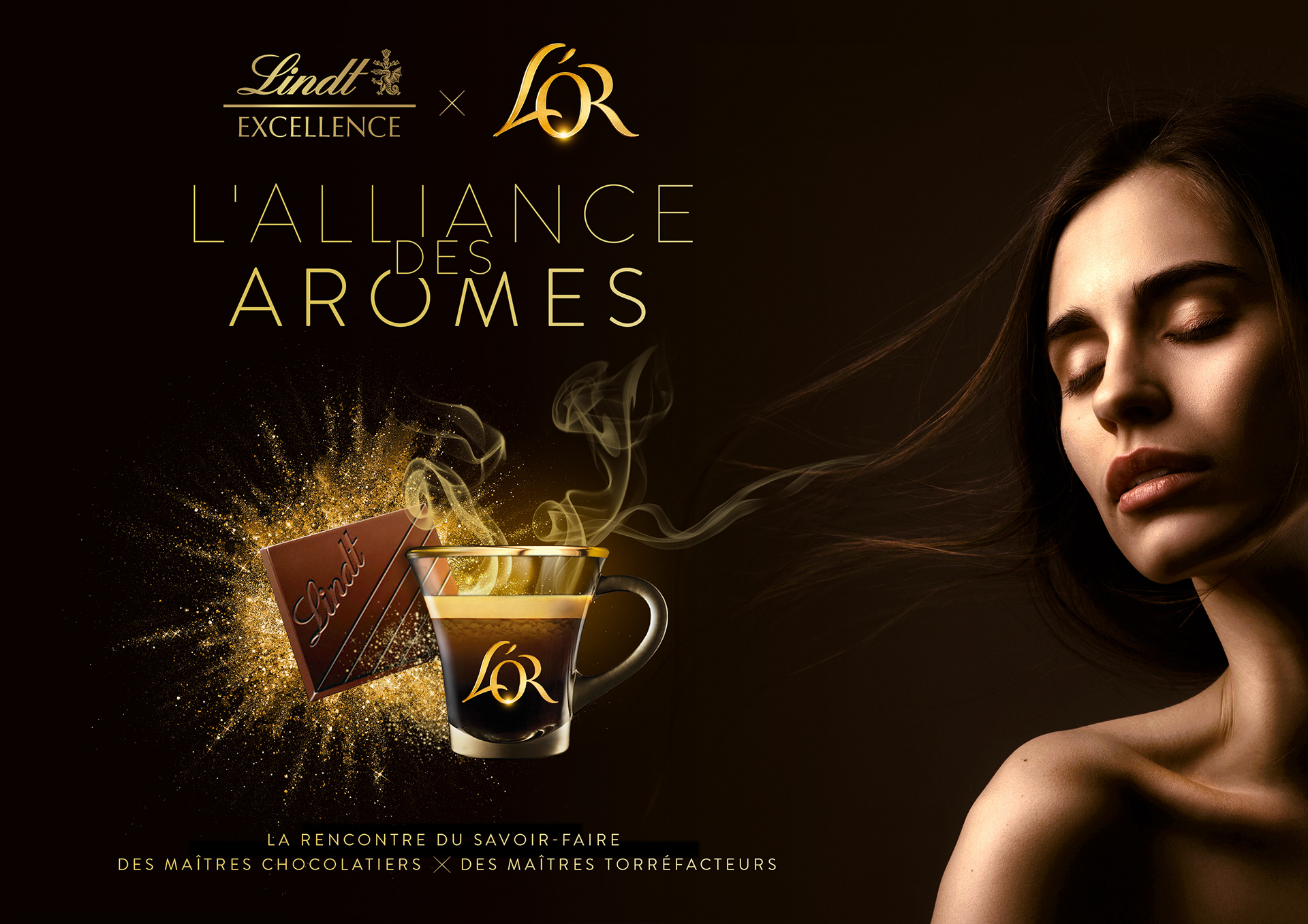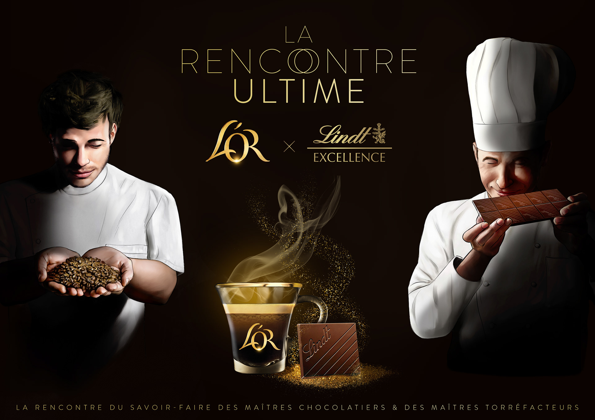 L'agence IDEACTIF m'a demandé de réfléchir pour son client L'OR pour une activation Promo en partenariat avec LINDT Excellence. L'Or est "Sans doute le meilleur café du monde" et LINDT excellence est "l'ultime plaisir, si fin, si intense". Il fallait créer un KV qui traduise l'essence du partenariat de ces 2 marques.
